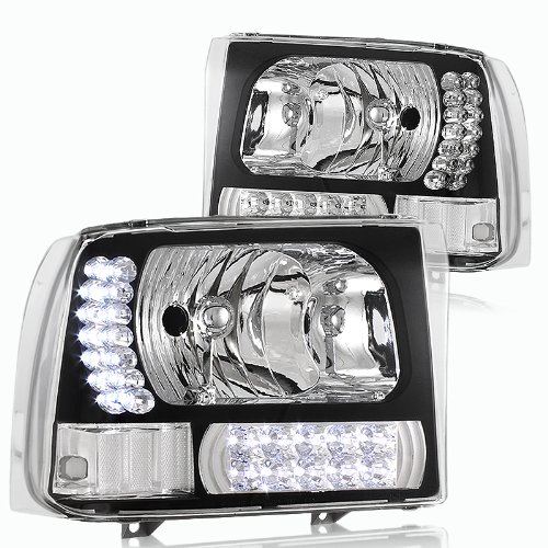 Features1999-2004 Ford F-250 and F-350. 2000-2004 Ford Excursion Black Housing LED HeadlightsPackage includes: 2x Headlights (1x Driver side, 1x Passenger Side)100% Brand new black housing euro style with R8 style LED on headlightbuilt in ventilation port to prevent foggingproperly sealed to prevent water leaks and OEM fitment 99-04 Ford F250/F350 and 00-04 Ford Excursion Black Housing Chrome Reflectors LED Headlights?