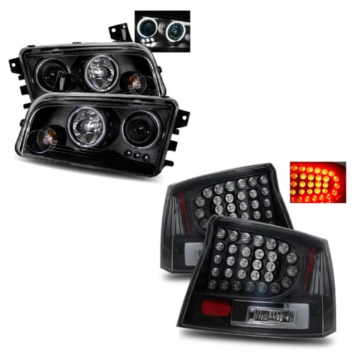 06-08 Dodge Charger Black CCFL Halo Projector Headlights + LED Tail Lights Combo